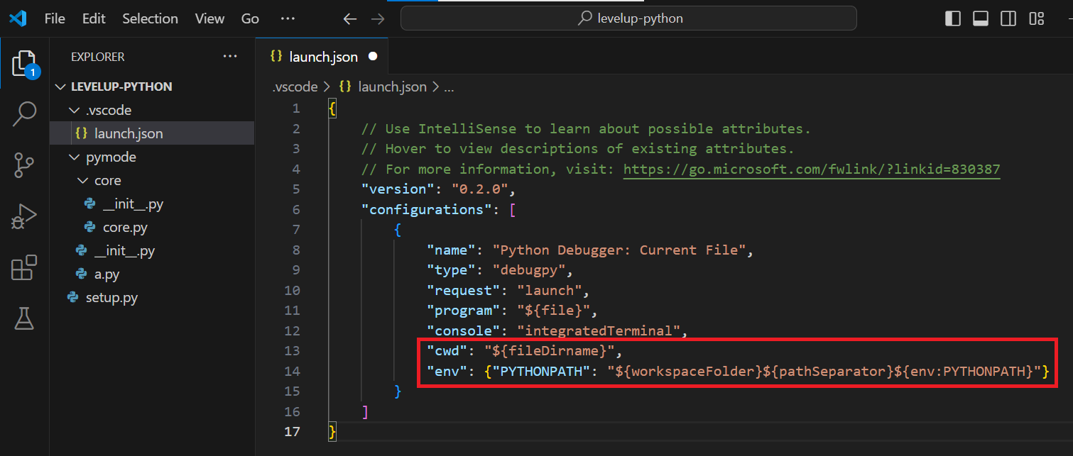 - "env": {"PYTHONPATH": "${workspaceFolder}${pathSeparator}${env:PYTHONPATH}"}